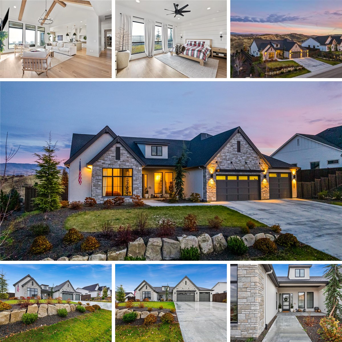 Showcasing UNOBSTRUCTED VIEWS of the Boise foothills, this James Clyde custom home sits proudly in The Highlands of Cartwright Ranch. Designed for both luxury and comfort, the thoughtful split-bedroom floor plan includes 4 beds, 3.5 baths and a versatile flex space perfect for work, play or hobbies. The chef’s kitchen includes Thermador appliances, custom-paneled refrigerator, and a spacious butler’s pantry. The main living area includes expansive windows that frame the panoramic foothills which are complemented by a cozy fireplace. The home also includes one of a kind custom millwork, custom wainscoting, and a striking custom 12 foot by 13 foot floor-to-ceiling built-in bookshelf. The primary bedroom also showcases the views of the Boise foothills and offers a spa-like bathroom connected to a beautifully built-out closet with direct access to the laundry room. The secondary bedrooms share a convenient dual-entry bathroom, while a second ensuite creates ideal privacy for guests. Outdoors, enjoy a fully fenced yard and a hot tub that sits perched above the foothills where you can enjoy a soak and the private views. Smart home upgrades include voice-activated Lutron lighting, Everlight permanent outdoor lighting and plug for EV charger. This stunning home is located in Cartwright Ranch, an outdoor-oriented community with miles of trails, lush open space, and community amenities including a swimming pool and workout facility.