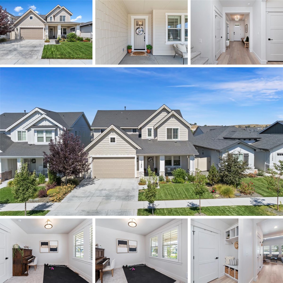 Welcome to the Lafayette by Berkeley Building Co., a classically modern home in the desirable Hope Springs community. Light-filled and airy, it features a neutral palette with mixed metals, engineered wood flooring, and soaring ceilings. The open layout includes 3 bedrooms plus a versatile main-level bonus room with adjacent full bath, ideal as a guest suite or optional 4th bedroom. Enjoy a cozy living room with fireplace flanked by built-ins, a dedicated office, and an upstairs tech space with built-in desk and shelving. The sleek kitchen offers quartz countertops, ample cabinetry, and a layout perfect for entertaining. The serene primary suite includes a walk-in closet and a beautifully finished bathroom with dual vanities and tiled shower. Step outside to a covered patio and private backyard with garden beds and fruit trees, all enclosed by low-maintenance vinyl fencing. Hope Springs offers a welcoming atmosphere with a pool, scenic paths, and a community garden to enjoy.
