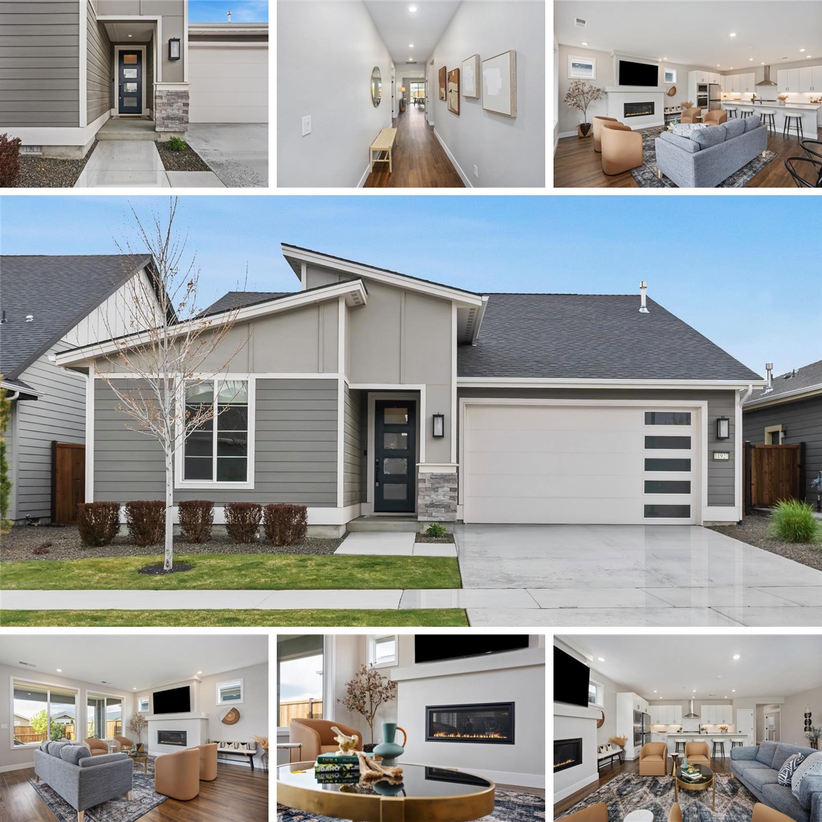 Beautifully maintained home on a premium lot with over $113K in upgrades, located in the sought after Trilogy Valor 55+ gated community. Enhanced curb appeal includes a premium elevation, upgraded exterior paint, and inviting front entry. Inside features 3 bedrooms plus a dedicated office or den with French doors, along with upgraded flooring, elegant trim, and quality finishes throughout. The gourmet kitchen offers quartz countertops, soft close cabinetry, and built in Whirlpool gas appliances. The open concept layout flows into a spacious great room with gas fireplace and large dining area, while sliding glass doors lead to an oversized covered patio, perfect for relaxing or entertaining. Additional highlights include window coverings, water softener and filtration system, and fully completed landscaping with fencing. Trilogy Valor offers resort style amenities including a clubhouse, fitness center, indoor and outdoor pools, pickleball courts, walking paths, a restaurant and bar, and a full social calendar. Conveniently located near Boise, Meridian, and outdoor recreation, this home combines comfort, style, and active living.