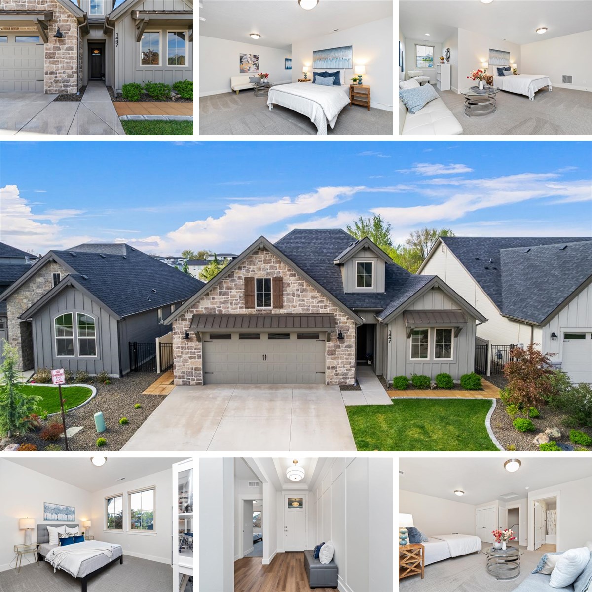 Welcome to Estrada Village, Eagle’s premier gated community by Blackrock Homes. Located just east of downtown Eagle, this better than new & thoughtfully designed home offers 3 bedrooms, each with its own private full bath providing exceptional comfort, privacy & flexibility for multigenerational living or guests. The open-concept showcases elevated finishes throughout, including 9’ ceilings with wood beam accents, stunning gas fireplace with custom built-ins & a wall of windows across the back. The kitchen is truly the heart of the home, featuring a large island, quartz countertops, Bosch appliances & spacious walk-in appliance pantry along with full-height cabinetry & glass-front upper cabinets with integrated lighting. Spa like primary suite with a DON'T MISS custom extended closet, separate dual vanities, walk-in shower & stand-alone soaker tub. The upstairs bedroom functions as a junior suite or bonus room. Additional highlights include dedicated office, separate laundry room, abundant storage throughout, dual-zone heating & cooling for year-round comfort & deep 2-car garage. Step outside to a covered back patio & no rear neighbors. This home offers a unique lifestyle with its own ½ acre community dog park, steps from Eagles restaurants & coffee shops. Close to the golf course, Eagle Tennis Club, health care, shopping & so much more. Welcome Home!
