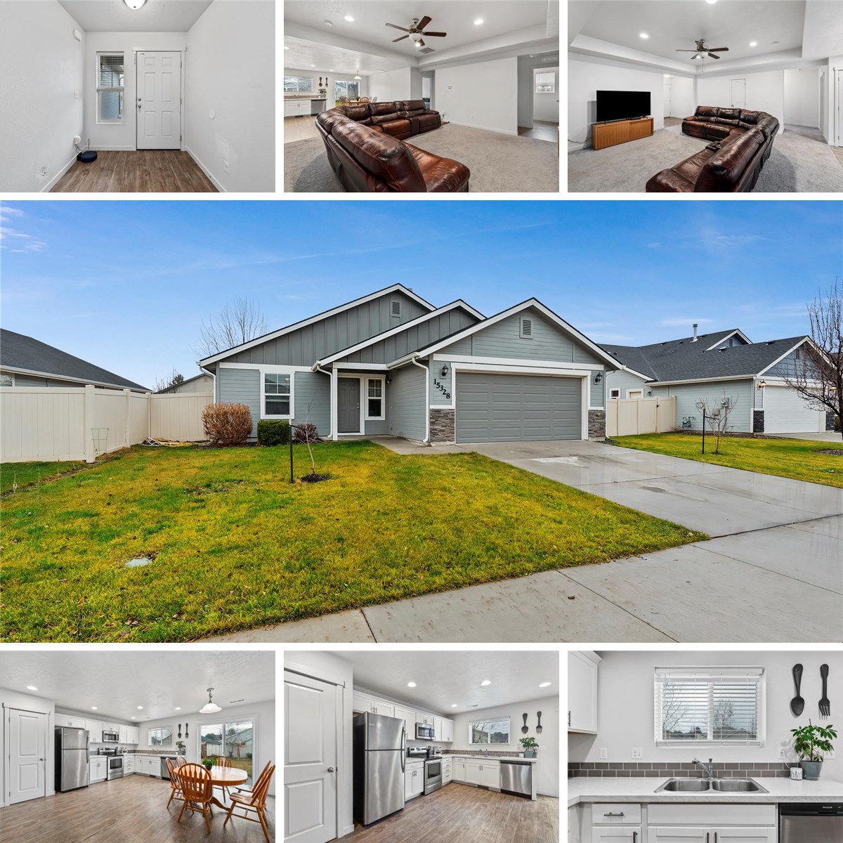 Experience modern flair and comfortable single-level living in this stylish home featuring an inviting great room with a decorative recessed ceiling and an open, light-filled floor plan. Windows bring in abundant natural light, while the well-designed layout includes generously sized bedrooms and a dedicated laundry room for added convenience. The kitchen comes complete with a refrigerator and microwave, and window blinds are already installed throughout the home. Enjoy efficient natural gas heating and central air conditioning and peace of mind with an upgraded conditioned crawl space-ideal for secure extra storage-and HERS Rated Energy Score to help keep utility costs lower. The spacious backyard is beautifully landscaped
