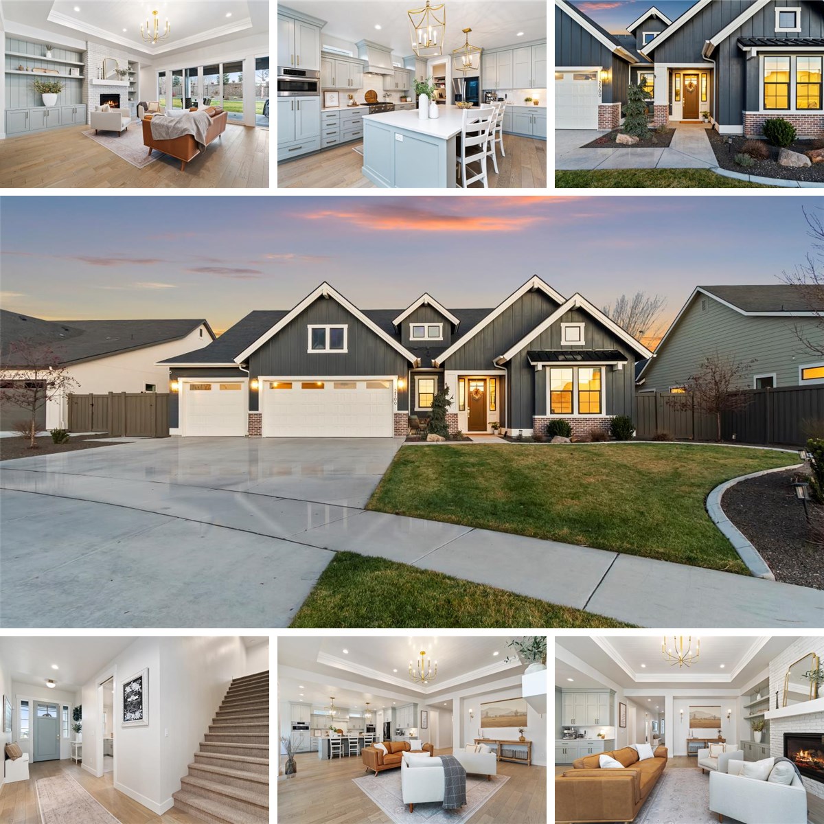 Experience refined luxury in this stunning Alturas Homes 4-bed, 3.5 bath residence, perfectly situated in the sought-after Homestead community in Eagle. Thoughtfully designed with exceptional craftsmanship and attention to detail, this home offers bright, open-concept living ideal for both everyday comfort and entertaining. The great room is a true showpiece, featuring a striking full-height brick fireplace, abundant natural light, powered window shades, and an expansive sliding door opening to an oversized covered patio with included hot tub. The gourmet kitchen is equipped with premium Thermador and Bosch appliances, a farmhouse sink, elegant fixtures, and a large island with additional storage, seamlessly connecting to a spacious dining area. A main-level office or bonus room provides flexibility for work or relaxation. The primary suite is a private retreat with a soaking tub, tiled walk-in shower, generous storage, privacy glass windows, and direct access to the covered patio and hot tub. With no rear neighbors and a combination of solid and iron fencing, the backyard offers privacy and tranquility. Additional features include a whole-house water softener, tankless water heater, and Coltrin central vacuum system. Two bedrooms on the main level share a full bath, while the upper level offers a secluded bedroom with ensuite—ideal for guests, a fourth bedroom, or office. Enjoy Homestead’s resort-style amenities, including pools, playgrounds, community events, and beautifully maintained landscaping. This is luxury living at its finest!