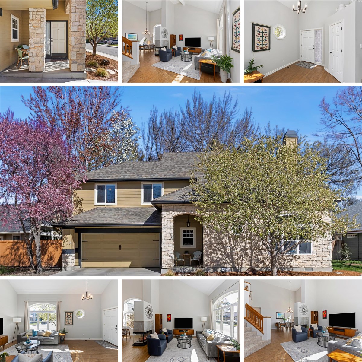 Tucked away in one of SE Boise’s most coveted neighborhoods, this beautifully maintained 3 bed, 2.5 bath home offers 1,900 sq ft of inviting, functional living space. From the moment you walk in, notice the soaring vaulted ceilings & open main-level layout perfect for everyday living & entertaining alike. Featuring a light filled living & dining area with built in bar anchored by a stunning double-sided glass fireplace. Continue on to the separate family room with built-in entertainment center, updated kitchen with spacious island, granite countertops, full tile backsplash, stainless steel appliances & gas range. Don't miss the separate main level laundry & 1/2 bath for guests. Upstairs, the spacious primary suite offers dual closets, separate vanities, corner soaker tub & walk in shower plus two more roomy bedrooms & full bath. Step outside to your own backyard oasis featuring zero scaped landscaping, a covered patio, fire pit & garden boxes surrounded by mature landscaping for added privacy. Updates include fresh interior paint, furnace & water heater new 2021, ceramic tile flooring throughout, exterior holiday lighting & roof appx 12 yrs old. All located just minutes from parks, the river, Greenbelt & downtown. This home offers the perfect blend of convenience, comfort, & lifestyle in highly sought-after SE Boise! Welcome Home!
