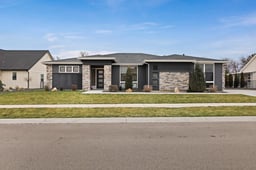 This is what happens when great design meets zero compromises. Single-level living done right. The Galena by Oakmont Signature Homes delivers the layout buyers love with the upgrades they actually want. Built in 2022, this single-level, open-concept home features a highly sought-after split bedroom design and elevated finishes throughout. The gourmet kitchen is the heart of the home, showcasing a large quartz island with breakfast bar, white cabinetry to the ceiling, stainless steel appliances, and generous storage, ideal for entertaining or everyday living. The dining nook adds personality with a statement wall detail and flows seamlessly into the great room, where a wood-beamed ceiling and stone fireplace create a warm, inviting focal point. The primary suite feels like a true retreat with a designer accent wall, sitting area, and spa-inspired bathroom made for unwinding. A front office or 4th bedroom off the grand entry with wood-trimmed ceiling offers space to work or create, while the mud room and oversized three-car garage keep life organized. This is not new construction. It is better. Thoughtfully designed, lightly lived in, and finished with timeless details that stand out in all the right ways.