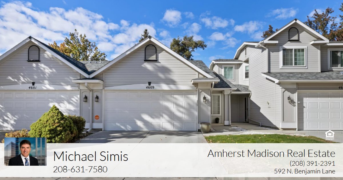 Single level townhouse that is move-in ready and ideally located in NW Boise with quick access to the Boise River, parks, greenbelt, foothills, and The River Club. Walk in and feel right at home in this 2-bedroom, 2 bath, 2-car garage home. The bright and inviting kitchen features newer stainless-steel appliances including a smooth glass top stove, refrigerator, dishwasher, microwave, granite countertops, full tile backsplash, ample counter space, painted cabinets, pantry and a raised breakfast bar. The kitchen opens to the dining area and a great room that has vaulted ceilings. The master bedroom has a walk-in closet and the bathroom has granite countertops, luxury vinyl flooring and a shower/tub. New Renewal by Anderson glass slider with a lifetime warranty. Premium blinds installed throughout the home. The garage has been painted and has epoxy flooring and a newer garage door in 2019. The backyard has a large, refinished wood deck and full wood fencing creating a private setting. The HOA maintains the exterior (yard, irrigation, paint, roof).