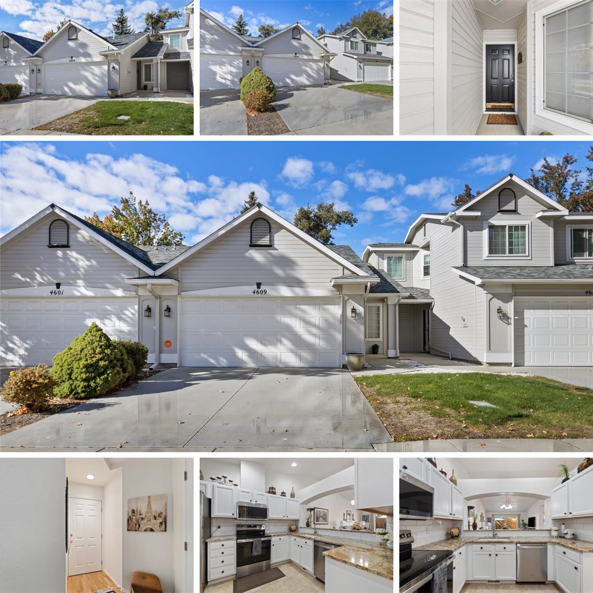 Single level townhouse that is move-in ready and ideally located in NW Boise with quick access to the Boise River, parks, greenbelt, foothills, and The River Club. Walk in and feel right at home in this 2-bedroom, 2 bath, 2-car garage home. The bright and inviting kitchen features newer stainless-steel appliances including a smooth glass top stove, refrigerator, dishwasher, microwave, granite countertops, full tile backsplash, ample counter space, painted cabinets, pantry and a raised breakfast bar. The kitchen opens to the dining area and a great room that has vaulted ceilings. The master bedroom has a walk-in closet and the bathroom has granite countertops, luxury vinyl flooring and a shower/tub. New Renewal by Anderson glass slider with a lifetime warranty. Premium blinds installed throughout the home. The garage has been painted and has epoxy flooring and a newer garage door in 2019. The backyard has a large, refinished wood deck and full wood fencing creating a private setting. The HOA maintains the exterior (yard, irrigation, paint, roof).