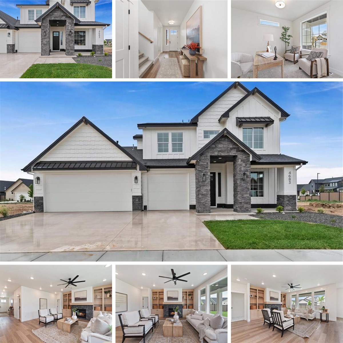 The Rachel by award-winning Biltmore Company LLC, features an elegant main-floor primary suite, spacious great room with a fireplace media console, a top-of-the-line chef's kitchen, a well-appointed den/office off the entry and a spacious upstairs bonus room. High-quality finishes throughout include gorgeous flooring, quartz kitchen counters with stunning cabinetry, stainless steel appliances, and a spacious walk-in pantry. Lots of outdoor entertainment space awaits you on the covered patio. The craftsmanship of this exquisite home is apparent in every thoughtful detail. Lincoln Creek offers an outdoor oasis right in your back door. Lincoln Creek offers a state-of-the art clubhouse including a dog wash station, community pool, social area, pickleball court, acres of open space and much more.