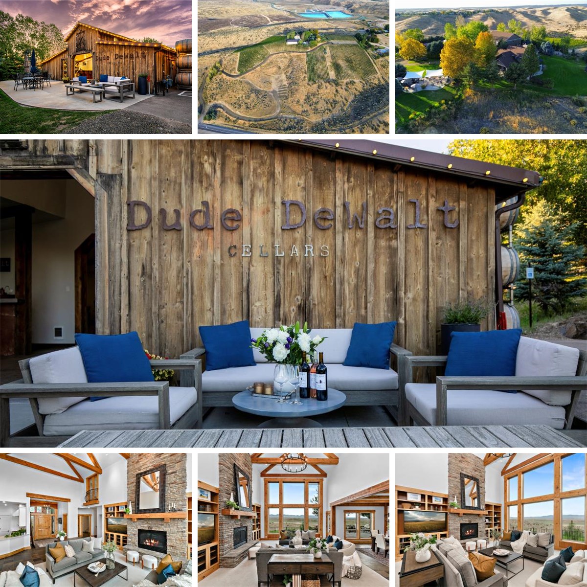 Welcome to Dude Dewalt Cellars & Event Center – a rare opportunity to own a piece of Idaho history on a gorgeous hilltop estate with 360-degree Treasure Valley views. Located in the rugged Eagle foothills, this award-winning winery was established in 2011 and named to honor the pioneers of this incredible region. The 5,615 SF custom home sits on 34.60 acres of rolling hills, offers endless views and borders BLM land. Recently updated with new carpet, lights, and paint, the home is move-in ready. Ideally positioned off HWY 16 with a dedicated turn lane, the property is a premier and unique event center, approved for up to 24 events annually with 250 guests and unlimited gatherings under 125. Even more, it has been approved for additional buildings—creating exceptional opportunity for future expansion and growth. A 50x60 shop includes 3 RV bays, half bath, office, and generous storage. Vineyards feature Malbec, Tempranillo, Cabernet Sauvignon, Cabernet Franc, and Syrah. Follow your dreams today!