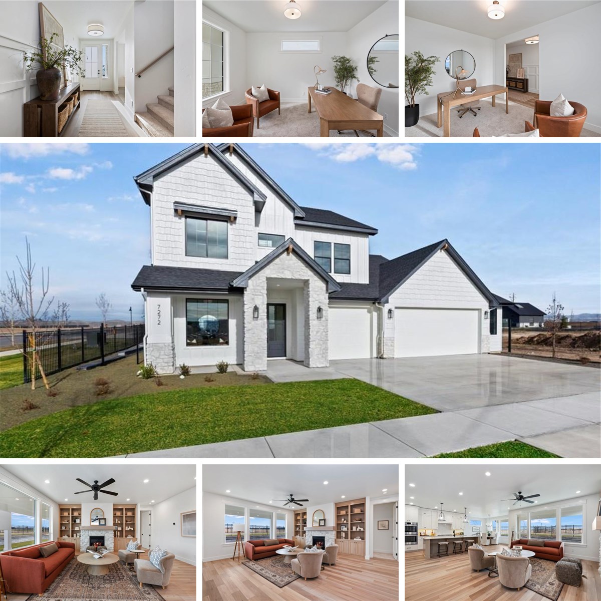 The Rachel, crafted by the award-winning Biltmore Company LLC, features a grand 18' x 18' great room with a fireplace media console and vaulted ceiling with beam, a top-of-the-line chef's kitchen, a well-appointed den/office off the entry, an elegant main-floor primary suite, and a spacious upstairs bonus room and guest suite. Two additional bedrooms feature small vaulted ceilings. High-quality finishes throughout include gorgeous flooring, quartz kitchen counters with stunning cabinetry and stainless steel appliances. Enjoy ample outdoor entertainment space on the 48' wide covered patio. The home sits on a corner lot with a north/east facing backyard and includes an oversized 3-car garage plus shop space. Boasting generous lot sizes, a heavily landscaped entry, a large community pool with changing rooms, beautiful walking paths, and gorgeous panoramic views of the valley, Millstone Farm will be the place you will want to call home.