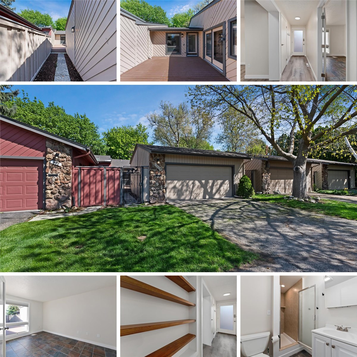 Welcome to easy living in The Meadows of Boise. Offering 3 bedrooms and 2 bathrooms, this townhome features a spacious living room highlighted by vaulted ceilings, wood beams, and skylights that fill the space with natural light. The kitchen opens seamlessly to the main living area, creating a functional layout for everyday living and entertaining. A cozy dining nook with large windows provides a bright spot for meals and offers direct access to the front porch. Ideally located in Boise, this townhome offers convenient access to shopping and Saint Alphonsus hospital with quick connectivity to the I-84 for easy commuting and seamless travel to downtown Boise, Boise State University, and the airport.