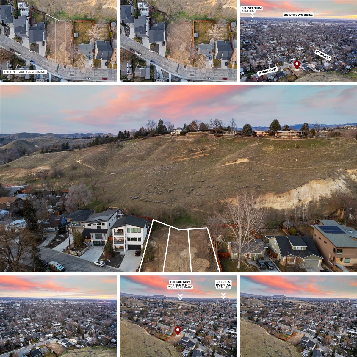 Rare opportunity in the North Boise Foothills offering three adjacent buildable lots with utilities already brought to the property. Whether you’re a builder, investor, or buyer ready to design a custom home, these parcels provide flexibility and long-term potential in one of Boise’s most sought-after locations. Located near the North End Historic District—yet just outside its boundary—these lots offer proximity to the character and charm of the area without historic overlay restrictions. Set at the base of the foothills with nearby trail access, the property presents the opportunity to capture scenic ridge and sunset views while remaining just minutes from Hyde Park and downtown Boise. Surrounded by established homes and foothills terrain, the setting combines neighborhood appeal with immediate access to outdoor recreation. Build-ready lots with utilities in place are increasingly limited in North Boise. Secure one, two, or all three and bring your vision to life in a premier foothills location.